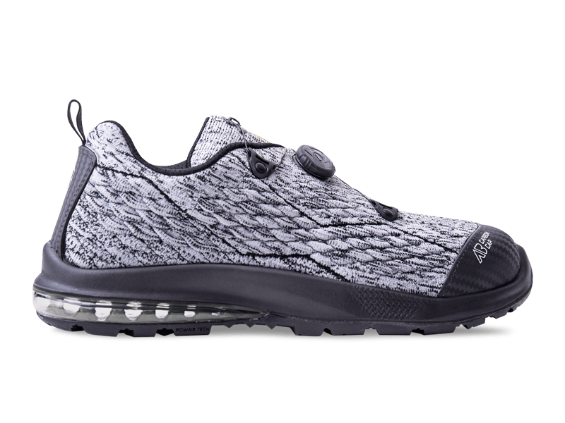 Tessuto che utilizza filati di poliestere a lavorazione jacquard effetto 3D per garantire la massima durabilità. Idrorepellente e altamente traspirante. Anti-sfilo, resistente al taglio, ad abrasione e strappo per garantire la massima sicurezza. Puntalino anti-abrasione in KPU.