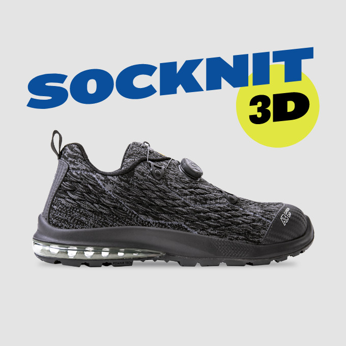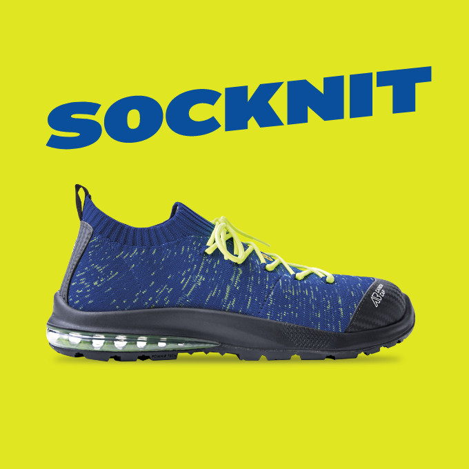 SOCKNIT è un tessuto che utilizza filati di poliestere riciclato a lavorazione jacquard per garantire la massima durabilità. Avvolge il piede come un calzino quindi facilissima da indossare grazie ai filati altamente elastici utilizzati alla caviglia. Idrorepellente e altamente traspirante perchè sfoderata. Anti-sfilo, resistente al taglio, ad abrasione e strappo per garantire la massima sicurezza.